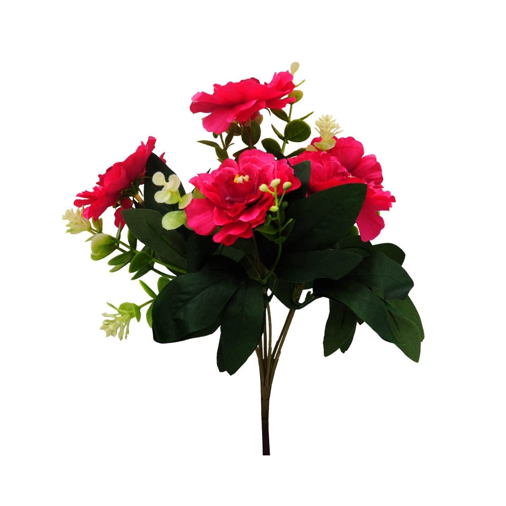 Dirbtinė tamsiai rožinė zinijų puokštė, 27 cm