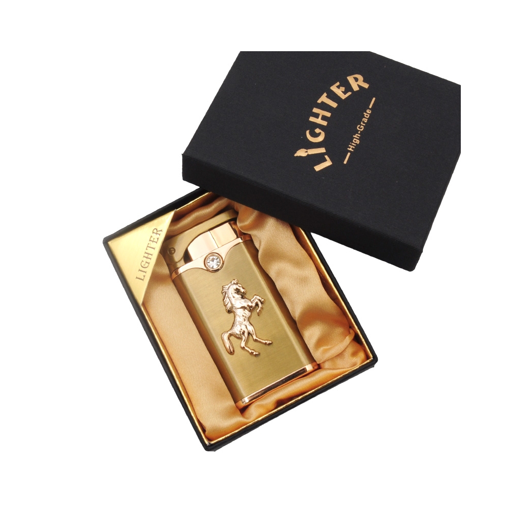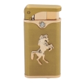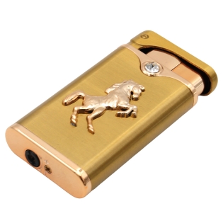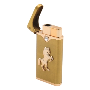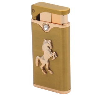 Aukso spalvos dujinis žiebtuvėlis, dekoruotas arklio simboliu. Puikiai tinka kasdieniam naudojimui ar kaip išskirtinis aksesuaras. Pildomas dujomis, jas išnaudojus galima vėl papildyti dujų talpyklą ir toliau naudoti žiebtuvėlį. Praktiška ir patogi smulkmena rūkantiems bei puiki dovana.