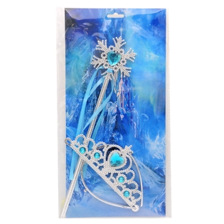 Karūnos ir burtų lazdelės rinkinys mažajai princesei. Šis rinkinys sukurtas tikroms pasakų herojėms. Jame rasite sidabrinę karūną su žydromis širdelės formos akutėmis ir elegantišką burtų lazdelę, puoštą kaspinėliais ir švytinčia detale. Lengva, patogi ir spindinti – tikra pasakiška atributika. Puikiai tinka gimtadieniams, karnavalams, fotosesijoms ar vaidmenų žaidimams.