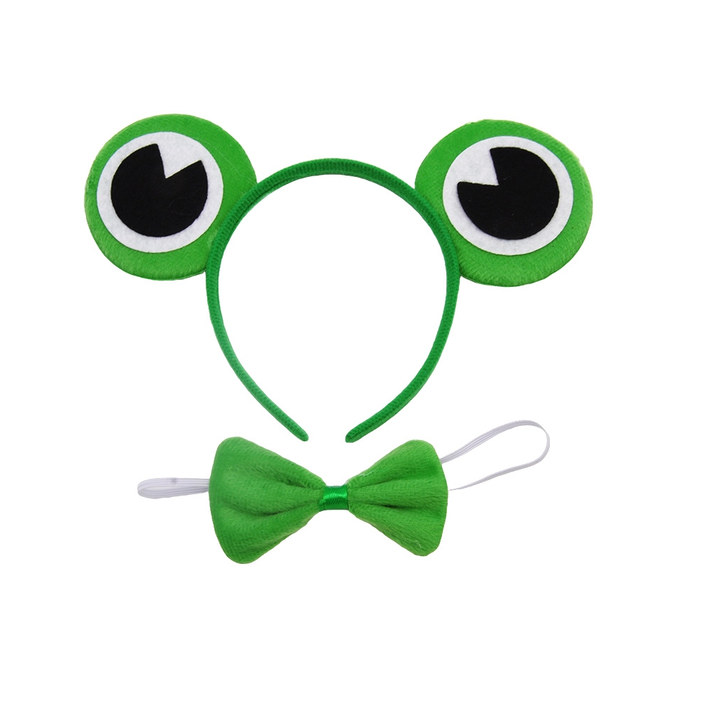 Rinkinyje: minkštas lankelis su didelėmis varlytės akimis, žalio kailiuko peteliškė ant elastinės juostos ir uodega su gumyte tvirtinimui. Tinka tiek vaikams, tiek suaugusiems.