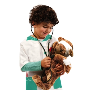 Vaikiškas žaislinis daktaro stetoskopas mažiesiems gydytojams. Žaislinis vaikiškas stetoskopas – puikus būdas lavinti vaiko vaizduotę, empatiją ir pažintinius įgūdžius. Pagamintas iš saugaus, lengvo plastiko, šis stetoskopas idealiai tinka žaidimams „ligoninė“ ar „gydytojas“. Patogus naudoti mažoms rankytėms, yra lengvas ir saugus – pagamintas iš plastiko. Puiki dovana mažajam smalsuoliui.
