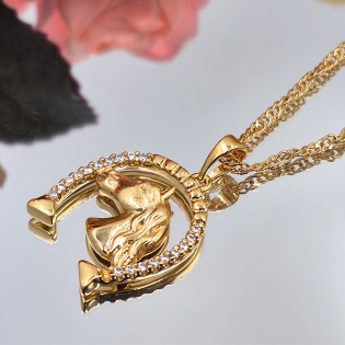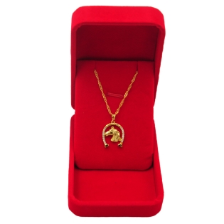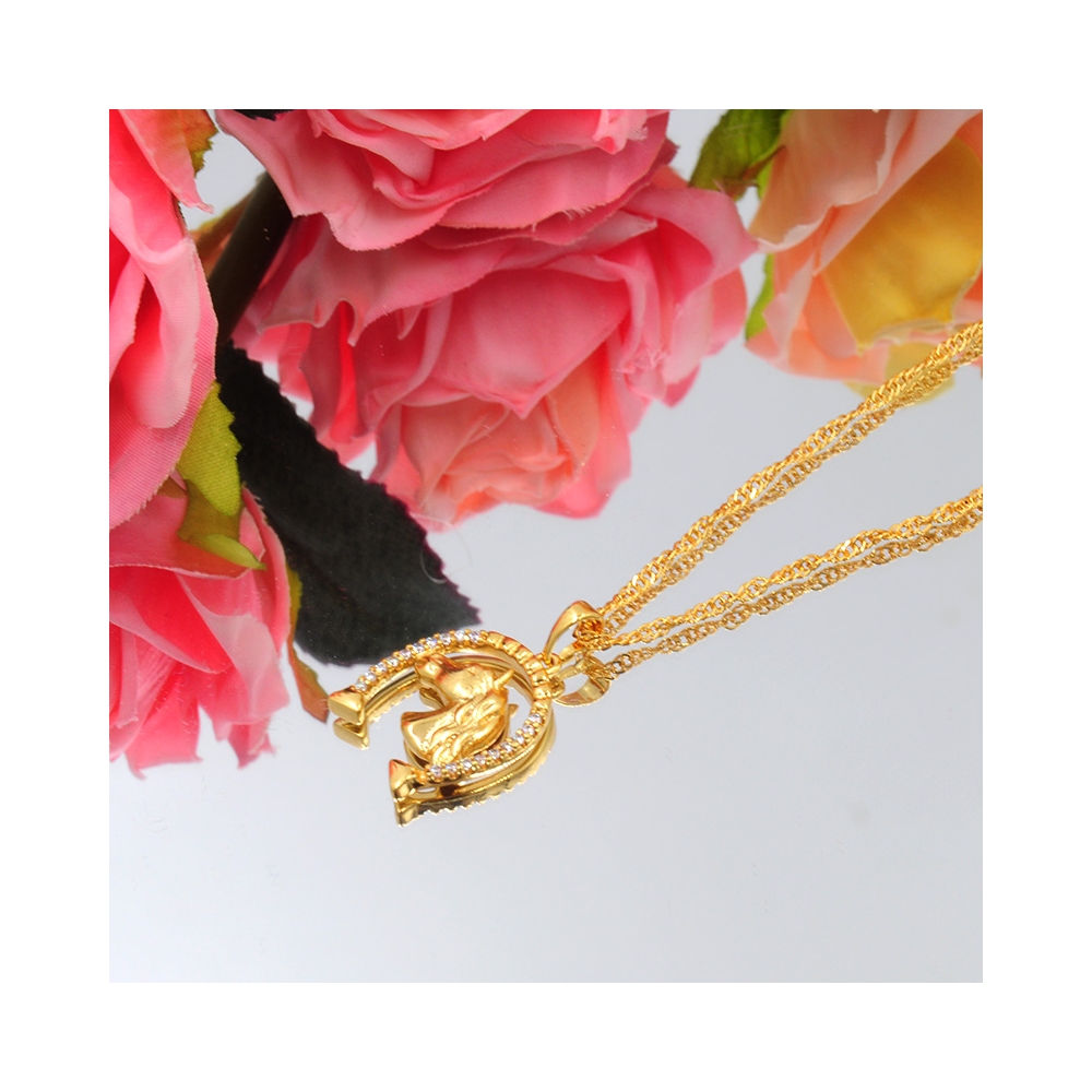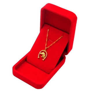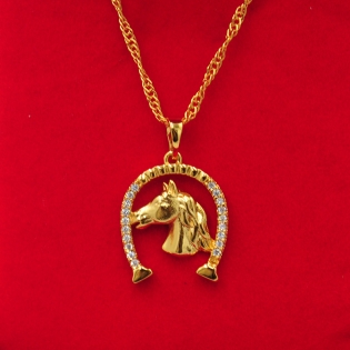Aukso spalvos grandinėlė su pakabuku "Pasaga su žirgo biustu" – subtilus aksesuaras kiekvienai dienai ar ypatingai progai. Blizgančios akutės suteikia papuošalui spindesio, o medicininis metalas išlaiko blizgesį ir nealergizuoja. Grandinėlė supakuotą į elegantišką, raudoną dėžutę, tai puiki dovana, bet kokią progą.
