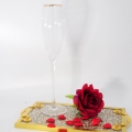 Krištolo šampano taurė – elegancija kiekvienai progai! Skaidraus krištolo šampano taurė, su auksiniu krašteliu – tai stilingas pasirinkimas ypatingoms akimirkoms. Jos puikiai tiks vestuvėms, Valentino dienos proga, Naujiesiems metams ar jubiliejui.