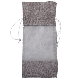 Pilkas drobinis dovanų maišelis su langeliu, 29x14 cm