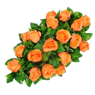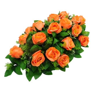 Vėlinių puokštė sukurta iš dirbtinių gėlių. Ji pagaminta iš 18 rožių žiedų. Dirbtinių gėlių puokštės, kompozicijas puošti kapus ypač tinka nuo vėlyvo rudens iki ankstyvo pavasario. Kokybiškų dirbtinių gėlių kompozicijos atrodys gana natūraliai ir papuoš jūsų artimųjų kapą ilgam.