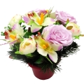 Dirbtinė rožių ir orchidėjų puokštė vazone