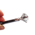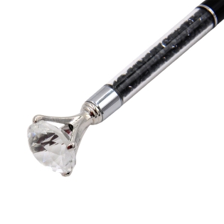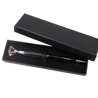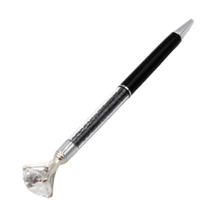 Rašiklis su kristalu – tai ne tik praktiška rašymo priemonė, bet ir stilingas aksesuaras. Juodas korpusas puoštas skaidriu skyriumi su dekoratyviniais kristalais, o viršuje – didelis brilianto formos kristalas, suteikiantis rašikliui prabangos pojūtį. Puikiai tinka dovanai ar stalo papuošimui. Rašiklis rašo mėlynos spalvos rašalu. Rašiklis įpakuotas į juodą dėžutę.