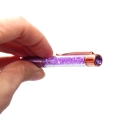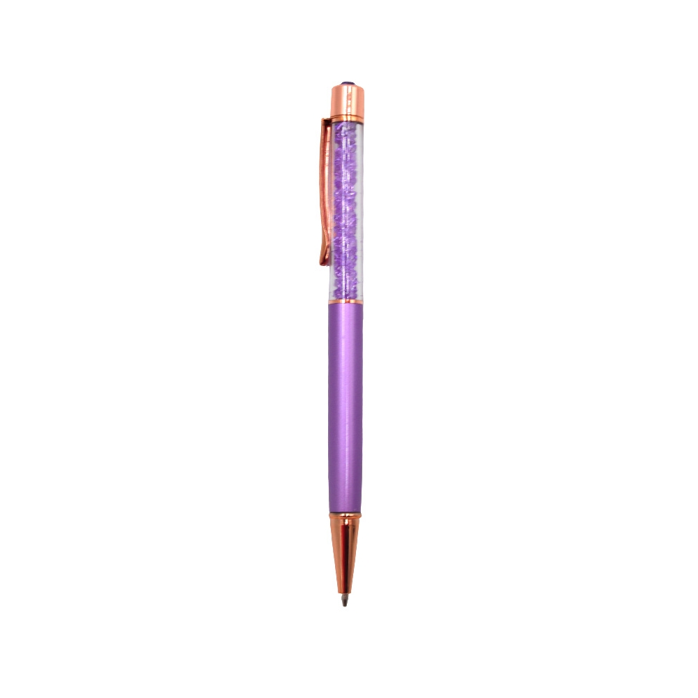 Rašiklis su kristalais – tai ne tik praktiška rašymo priemonė, bet ir stilingas aksesuaras. Violetinis korpusas puoštas skaidriu skyriumi su dekoratyviniais kristalais, o viršuje – nedidelis kristalas, suteikiantis rašikliui prabangos pojūtį. Puikiai tinka dovanai ar stalo papuošimui. Rašiklis rašo mėlynos spalvos rašalu. Rašiklis įpakuotas į skaidrią dėžutę.