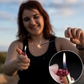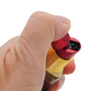 Lūpų dažų formos dujinis žiebtuvėlis. Tai originali dovana dailiajai žmonijos pusei, kuri puikiai dera prie kiekvienos moters rankinėje tvyrančio chaoso.